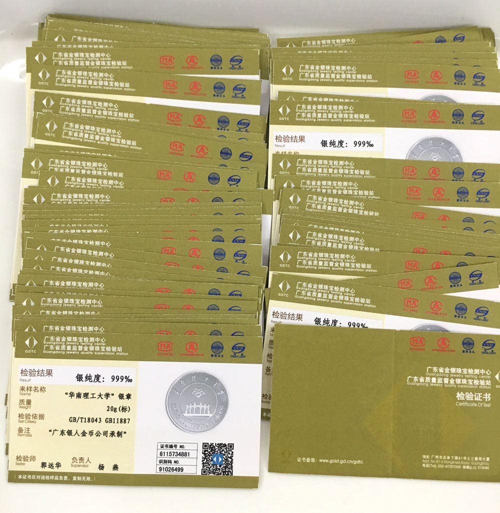 • 廣東省質(zhì)監(jiān)白銀含銀量金銀成色品質(zhì)鑒定證書