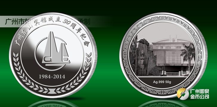 2014年2月:廣州東山賓館成立30周年純銀紀念幣制作