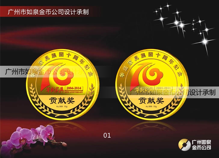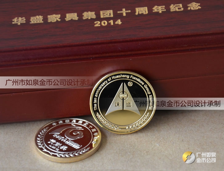 中山華盛公司周年慶定制純金紀(jì)念幣鑲水晶