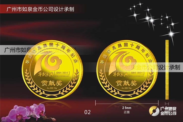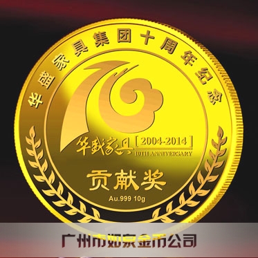 中山華盛公司年會表彰獎勵在崗三年、服務滿五年、十年優秀員工貢獻獎定做純金金牌、定制純金獎牌 制作千足金金幣