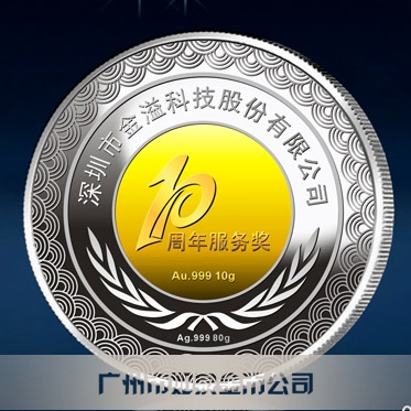 2014年3月:深圳金溢公司十周年慶制作銀鑲金紀(jì)念幣