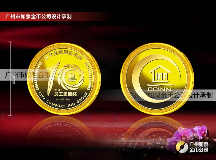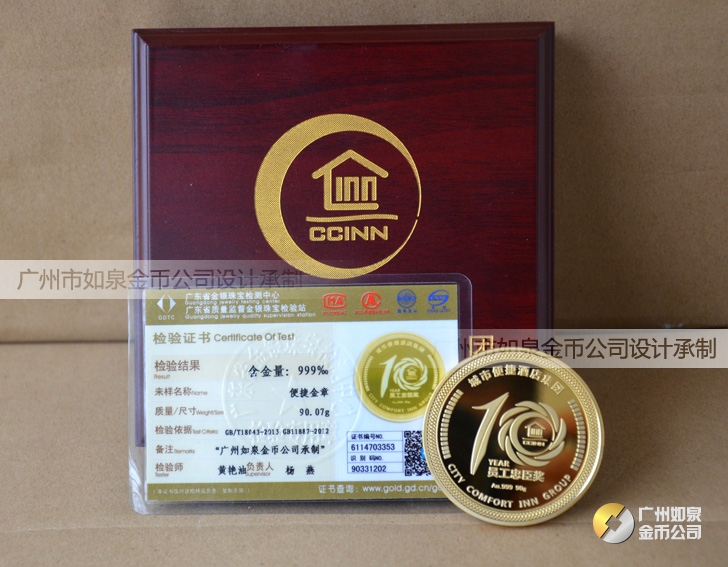 制作城市便捷酒店工作十年以上優秀員工紀念金牌