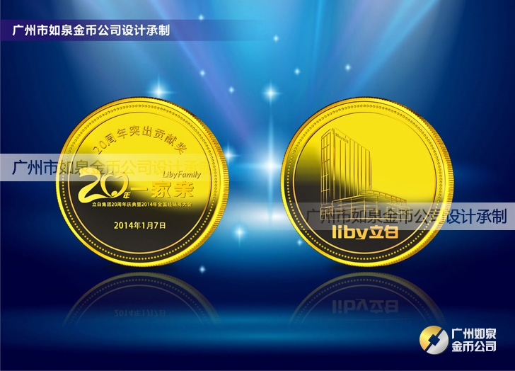 定制廣州立白集團20周年一家親活動紀念幣、純金紀念幣