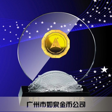定制中山華盛公司定制十周年紀(jì)念幣鑲嵌水晶擺件