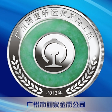 定制廣鐵集團制做銀紀念幣定制純銀鑲玉紀念幣