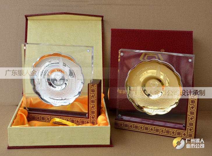 深圳金賽銀并購(gòu)基金公司企業(yè)上市純銀紀(jì)念盤定做、鑲水晶擺件底座