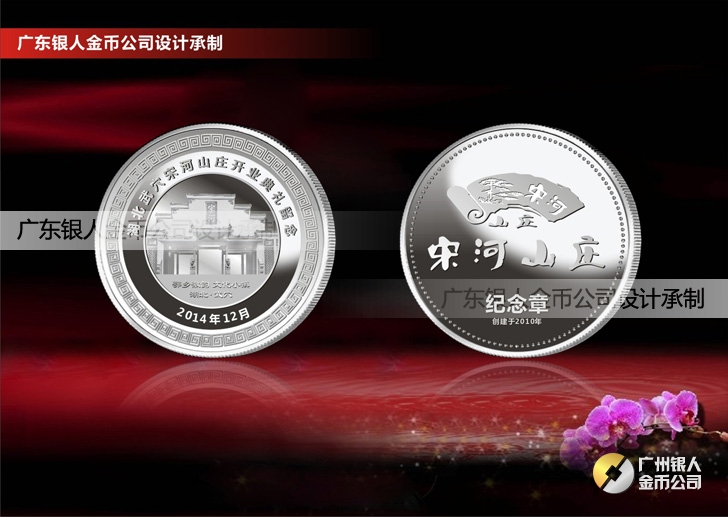 訂做湖北宋河山莊開業(yè)留念紀(jì)念金銀紀(jì)念章、訂制紀(jì)念金銀章