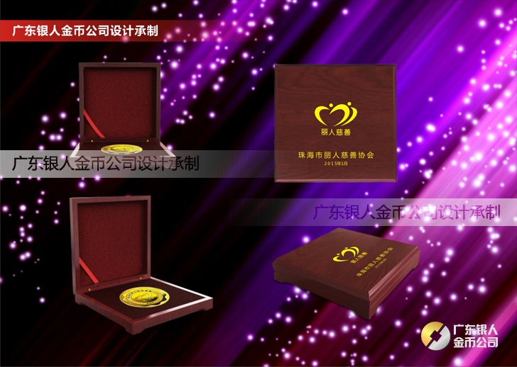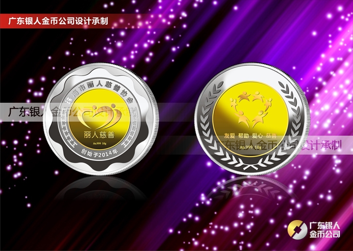 珠海麗人慈善會定制純銀鑲嵌純金幣定制、銀包金紀念幣定制