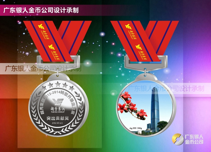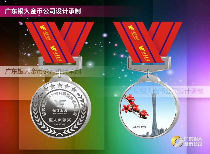 越秀集團定制純銀獎牌制作銀質獎章定制