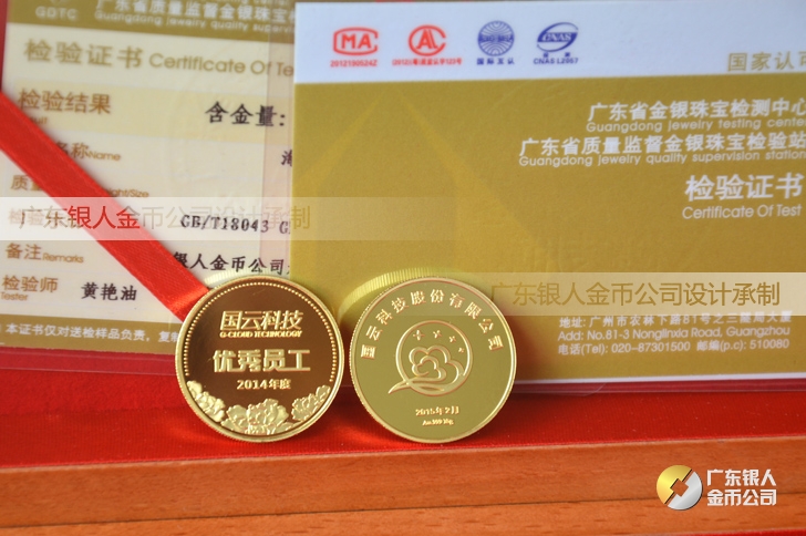 廣東銀人金幣公司承接客戶個(gè)性化定制的金銀幣、金銀章、金銀條、金銀牌、金銀盤(pán)均由國(guó)家質(zhì)監(jiān)部門(mén)、嚴(yán)格檢測(cè)、權(quán)威鑒定: