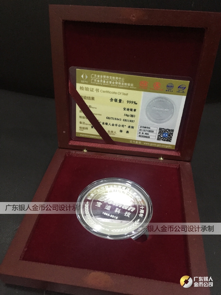 廣東銀人金幣公司承接客戶個性化定制的金銀幣、金銀章、金銀條、金銀牌、金銀盤均由國家質監部門、嚴格檢測、權威鑒定: