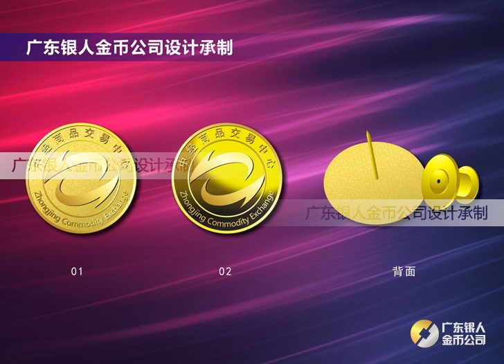 2015年3月定制 中經商品交易中心純金徽章、萬達金銀中心千足金徽章