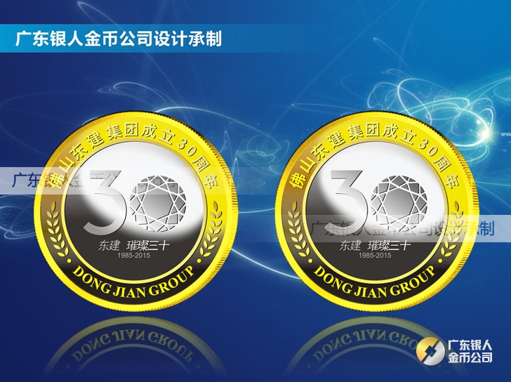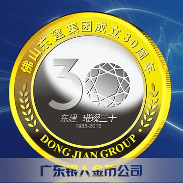 2015年4月制造 佛山東建集團成立30周年金鑲銀紀念幣定制
