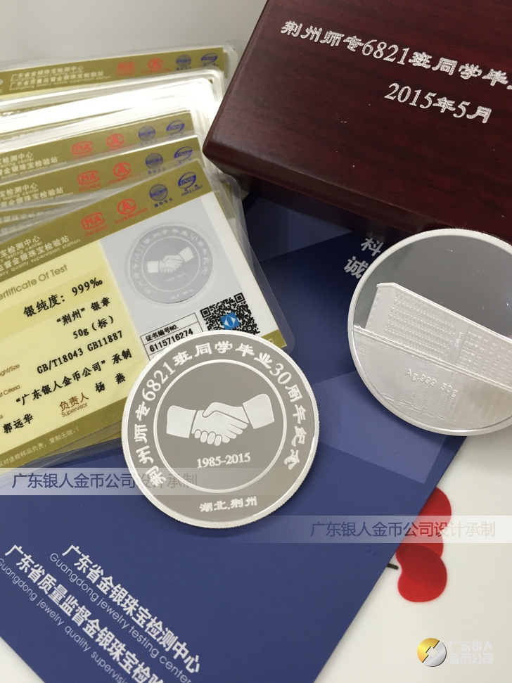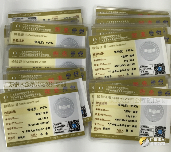 廣東銀人金幣公司承接客戶個(gè)性化定制的金銀幣、金銀章、金銀條、金銀牌、金銀盤(pán)均由國(guó)家質(zhì)監(jiān)部門(mén)、嚴(yán)格檢測(cè)、權(quán)威鑒定: