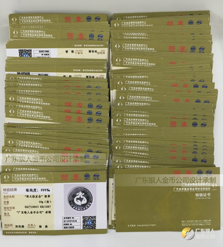 廣東銀人金幣公司承接客戶個(gè)性化定制的金銀幣、金銀章、金銀條、金銀牌、金銀盤(pán)均由國(guó)家質(zhì)監(jiān)部門(mén)、嚴(yán)格檢測(cè)、權(quán)威鑒定: