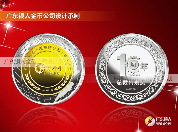 2015年6月生產 廣州匯峰機械公司十周年慶典紀念金銀幣制作