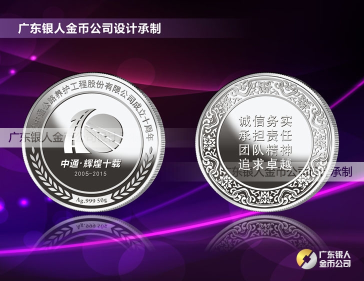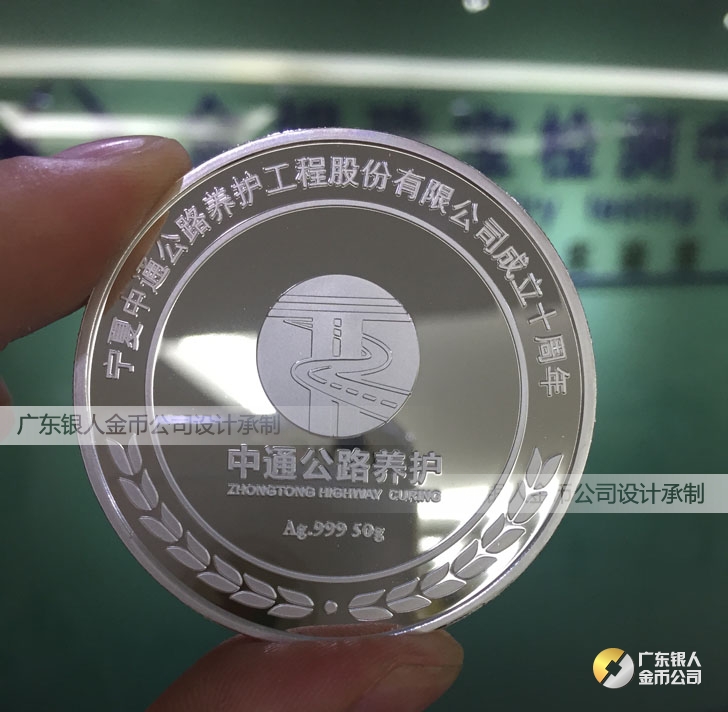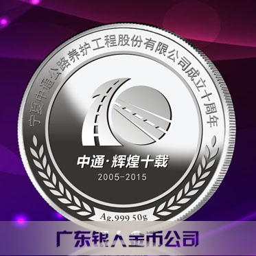 2015年7月鑄造 寧夏中衛中通公路工程公司十周年慶純銀銀牌定制