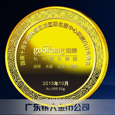 2015年9月定制 深圳市國康醫(yī)院十年員工純金金牌定制