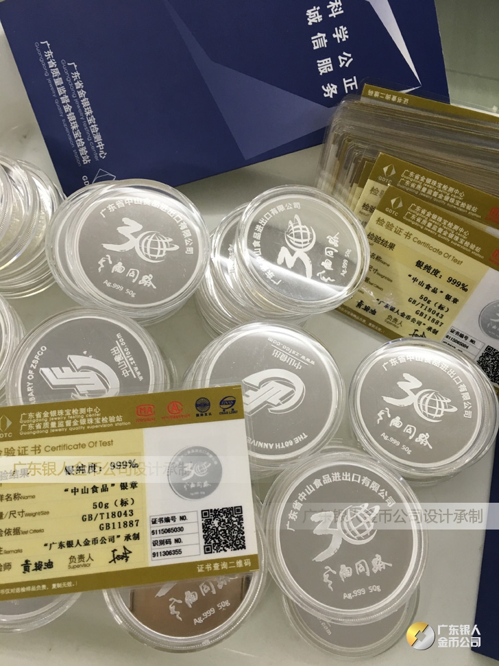 廣東銀人金幣公司承接客戶個性化定制的金銀幣、金銀章、金銀條、金銀牌、金銀盤均由國家質監部門、嚴格檢測、權威鑒定: