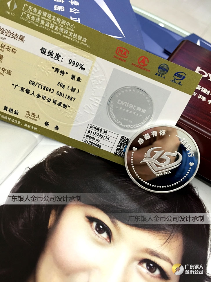 廣東銀人金幣公司承接客戶個性化定制的金銀幣、金銀章、金銀條、金銀牌、金銀盤均由國家質(zhì)監(jiān)部門、嚴(yán)格檢測、權(quán)威鑒定: