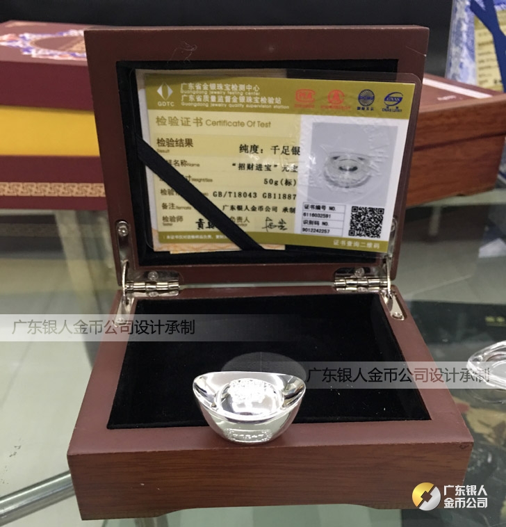 廣東銀人金幣公司承接客戶個性化定制的金銀幣、金銀章、金銀條、金銀牌、金銀盤均由國家質(zhì)監(jiān)部門、嚴(yán)格檢測、權(quán)威鑒定: