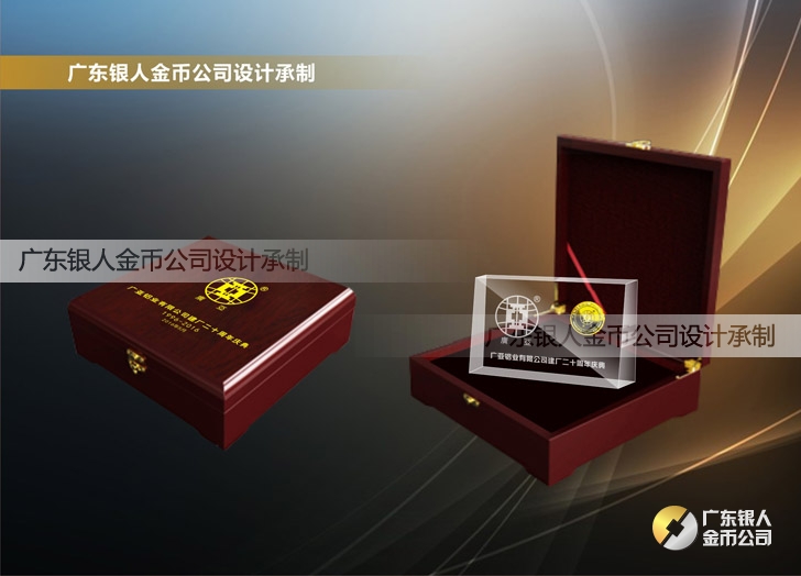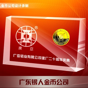 2016年4月定制 廣亞鋁材集團20周年慶純金幣鑲水晶擺件定制