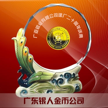 2016年4月定制 廣亞鋁業集團20周年慶紀念幣鑲水晶擺件定制