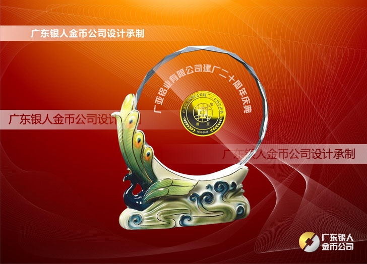廣亞鋁業(yè)公司20周年慶鳥巢國家體育場工程項目建設功臣卓越貢獻獎黃金獎牌與黃金金牌、千足金純金金牌定制