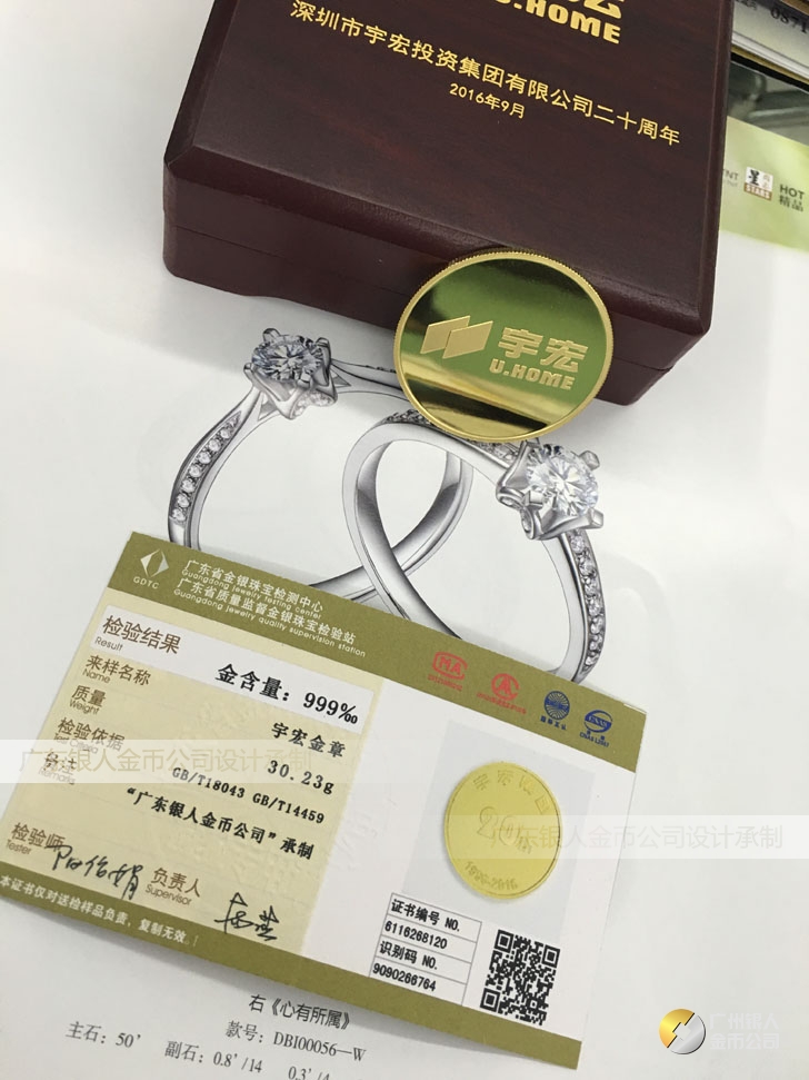 2016年8月 深圳定制 深圳宇宏集團定制金幣、純金紀念章