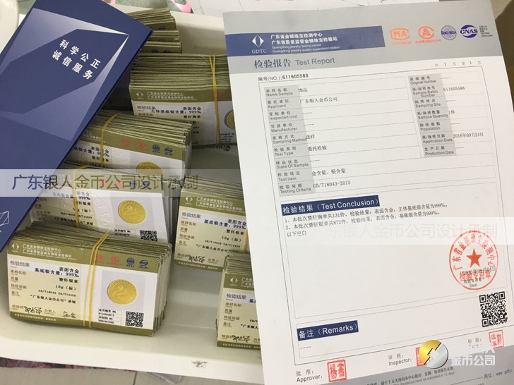 廣東銀人金幣公司承接客戶個性化定制的金銀幣、金銀章、金銀條、金銀牌、金銀盤均由國家質監部門、嚴格檢測、權威鑒定: