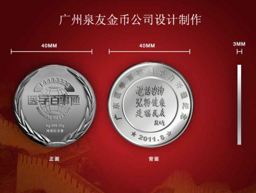 2011年8月 廣東省衛生廳下屬機構醫學百事通開通紀念銀章定制