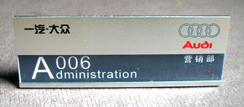 一汽 — 大眾汽車(chē)有限公司——旗下品牌“大眾”、“奧迪”:授權(quán)專(zhuān)營(yíng)店的員工胸牌,4S店銷(xiāo)售員工牌的設(shè)計(jì)與制作。(由長(zhǎng)春吉廣傳媒集團(tuán)監(jiān)制。)