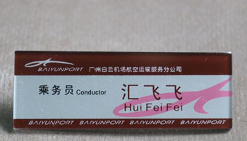 廣州白云國際機場——機場空姐胸牌,工作人員工號牌、2009年度“旅客服務提升”形象標識胸牌的設計與制作。