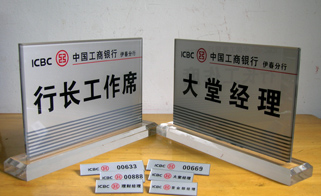 中國(guó)工商銀行黑龍江省分行——黑龍江省分行、各地市支行工作人員胸牌、營(yíng)業(yè)部員工工牌、營(yíng)業(yè)員工號(hào)牌及銀行服務(wù)窗口桌牌、柜臺(tái)水晶臺(tái)牌的設(shè)計(jì)與制作。