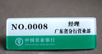中國(guó)農(nóng)業(yè)銀行廣州市分行——為中國(guó)農(nóng)業(yè)銀行廣東省分行廣州市農(nóng)業(yè)銀行制作銀行工作人員佩戴的農(nóng)業(yè)銀行胸牌、農(nóng)業(yè)銀行工牌。
