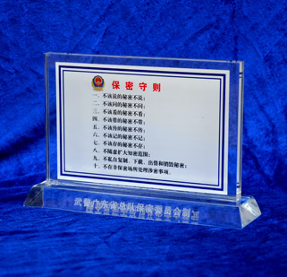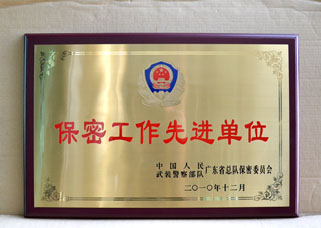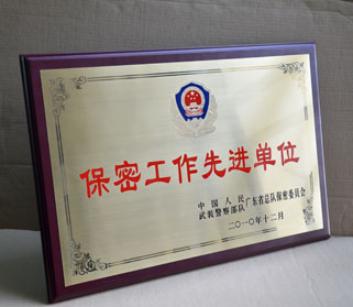 中國人民武裝警察部隊(duì)廣東省總隊(duì)——為武警廣東省總隊(duì)批量設(shè)計(jì)制作2010年度司令部先進(jìn)單位獎(jiǎng)牌、合法授權(quán)補(bǔ)作部分軍人武警07軍官硬金屬姓名牌、水晶工作崗位牌、大批量的《全軍保密條例守則》制度牌匾、高檔水晶相框。