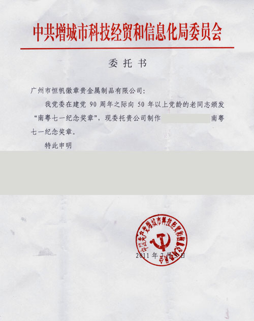 增城市科技經貿和信息化局——為中共增城市科技經貿和信息化局委員會、該局黨委制作定制50年以上黨齡的老黨員紀念章、50年以上黨齡的老黨員南粵七一紀念獎章、50年以上黨齡的老黨員南粵七一紀念章、50年以上黨齡的老黨員南粵七一紀念勛章。