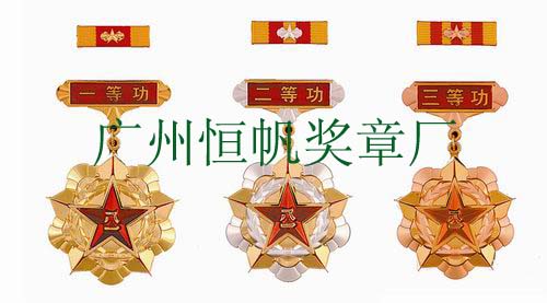 (從左至右分別為一等功獎章、二等功獎章、三等功獎章。)