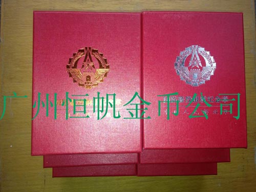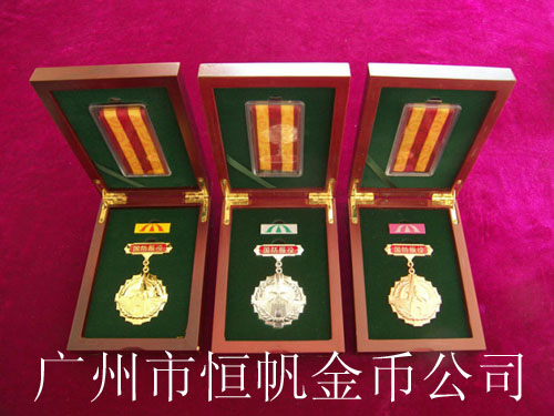 使用材質:金、銀、銅質紀念章分別按銅質鍍金、銅質鍍銀和紫銅材質制作,彰顯了榮譽的層次性。同時,每枚證章均配有木盒和說明卡片、綬帶,紀念章、略章。(見圖片—2、3、4、5)
