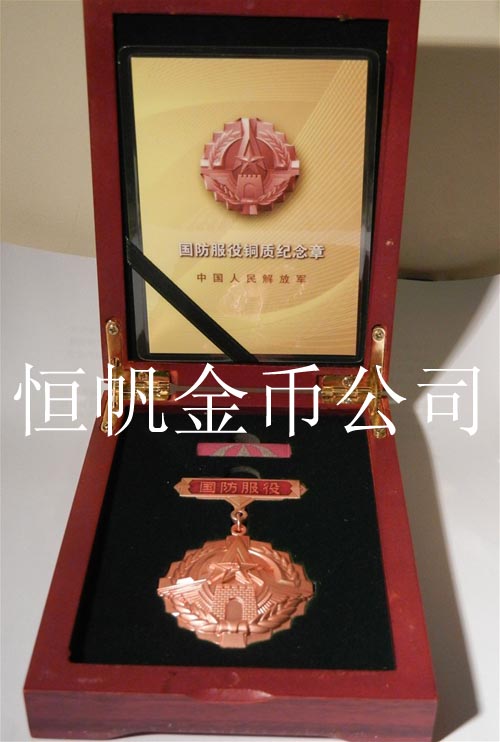 國防服役紀念章是解放軍從 2011年8月1日起正式啟用五種新式勛章、獎章、紀念章中的一種,設置金銀銅三個級別。