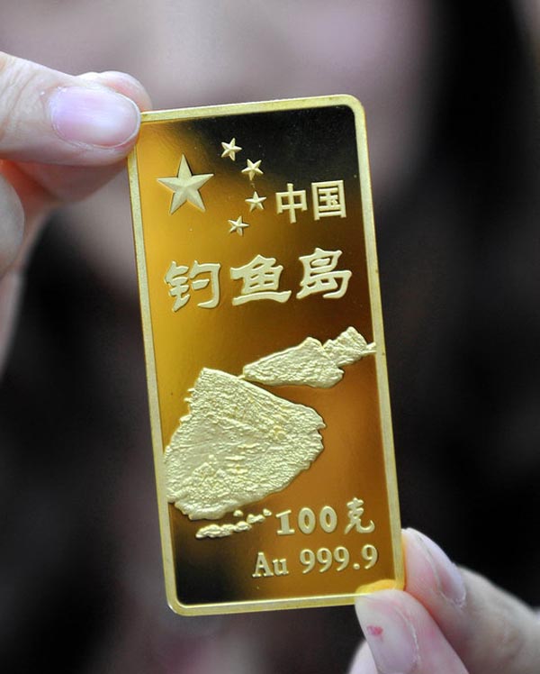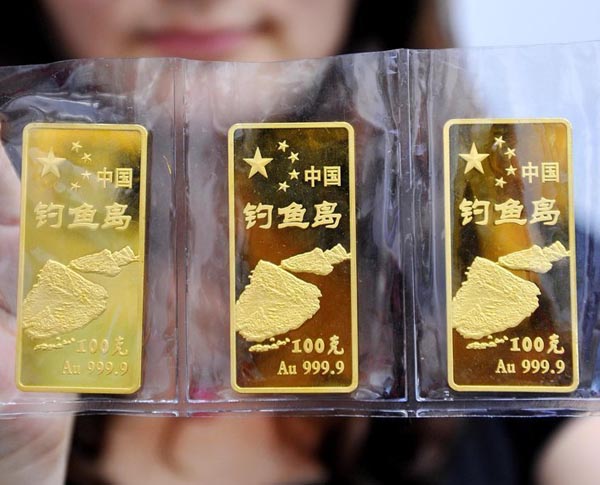 適逢年底黃金旺銷(xiāo)期,廣東市場(chǎng)上出現(xiàn)了很多具有中華民族特色、傳統(tǒng)文化特點(diǎn)的黃金白銀產(chǎn)品;周一時(shí)間,廣百、新大新、亞洲國(guó)際大酒店黃金超市等商家推出了“中國(guó)釣魚(yú)島”儲(chǔ)蓄型金條。