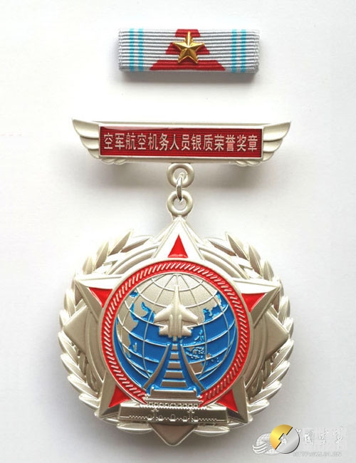 航空機務人員金質榮譽獎章,主要授予獲得一等功以上獎勵或榮立二等功并有重大影響的機務人員;航空機務人員銀質榮譽獎章,主要授予被空軍評為優秀航空機務工作者,或在師以下部隊從事機務工作連續滿30年的機務人員;空軍航空機務人員銅質榮譽獎章,主要授予發現重大故障隱患,符合《空軍飛行訓練獎懲辦法》規定的3000元(含)以上物質獎勵條件,且受到空軍裝備部通報表彰的師級以下部隊航空機務人員。圖為飛行銀質獎章實物。