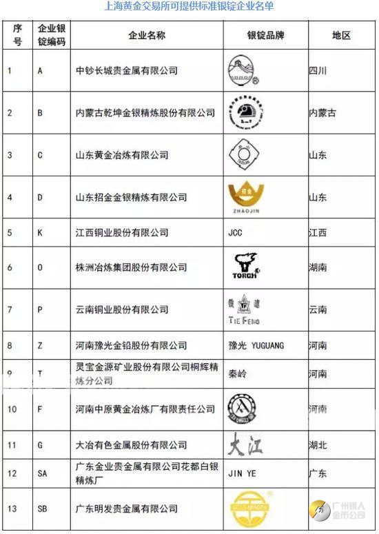 廣東銀人金幣公司發(fā)布上海黃金交易所可以提供標(biāo)準(zhǔn)金條、標(biāo)準(zhǔn)銀條、標(biāo)準(zhǔn)金磚、標(biāo)準(zhǔn)銀磚、標(biāo)準(zhǔn)金錠、標(biāo)準(zhǔn)銀錠等金條現(xiàn)貨、銀條現(xiàn)貨的指定供貨單位,并經(jīng)上海黃金交易所目前可提供標(biāo)準(zhǔn)金錠、金條、銀錠企業(yè)均經(jīng)過嚴(yán)格認(rèn)證,認(rèn)證企業(yè)名錄及核實(shí)過的官方法定國(guó)標(biāo)認(rèn)證公司名稱、企業(yè)名單。