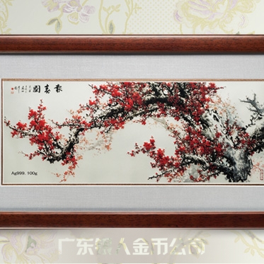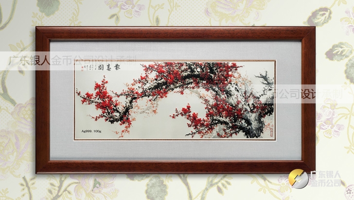 紅梅報春圖純銀銀畫批發零售個性定制純銀浮雕銀畫