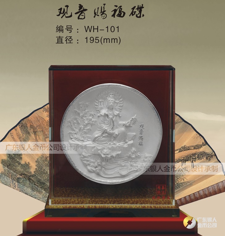觀音賜福銀質(zhì)紀(jì)念盤制作、制做純銀銀盤